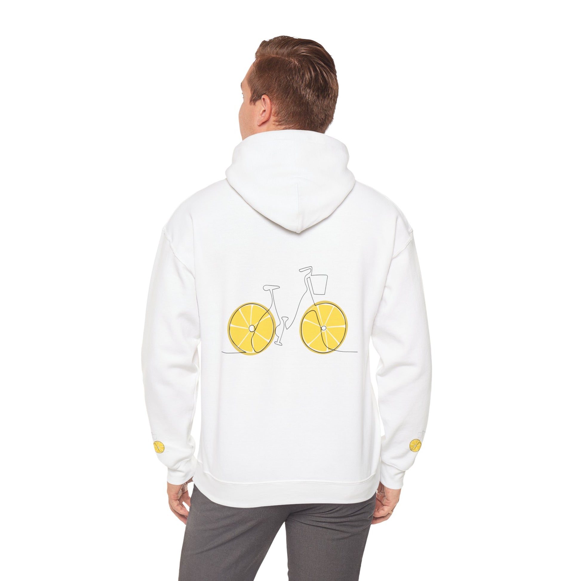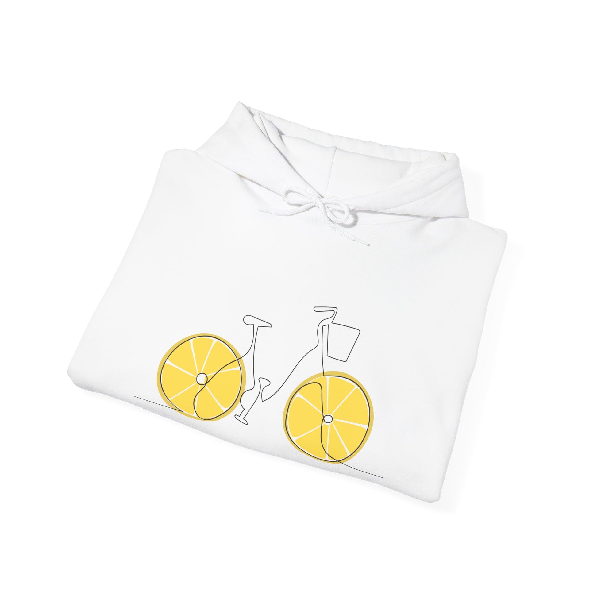 Introducing our delightful Hooded Sweatshirt, the perfect blend of comfort and style! This cozy piece features a charming bicycle graphic with playful lemon wheels, radiating a cheerful and sunny vibe. Ideal for casual outings, this sweatshirt serves as a great layering option for cooler days. It's perfect for those who appreciate unique, fun designs and love to stand out. Whether you're biking through the park, lounging at home, or enjoying a cozy coffee date, this sweatshirt is your go-to companion. A thoughtful gift for friends and family during holidays, birthdays, or any celebration, making it a fashionable expression of personality that speaks to anyone who enjoys life’s simple joys.
