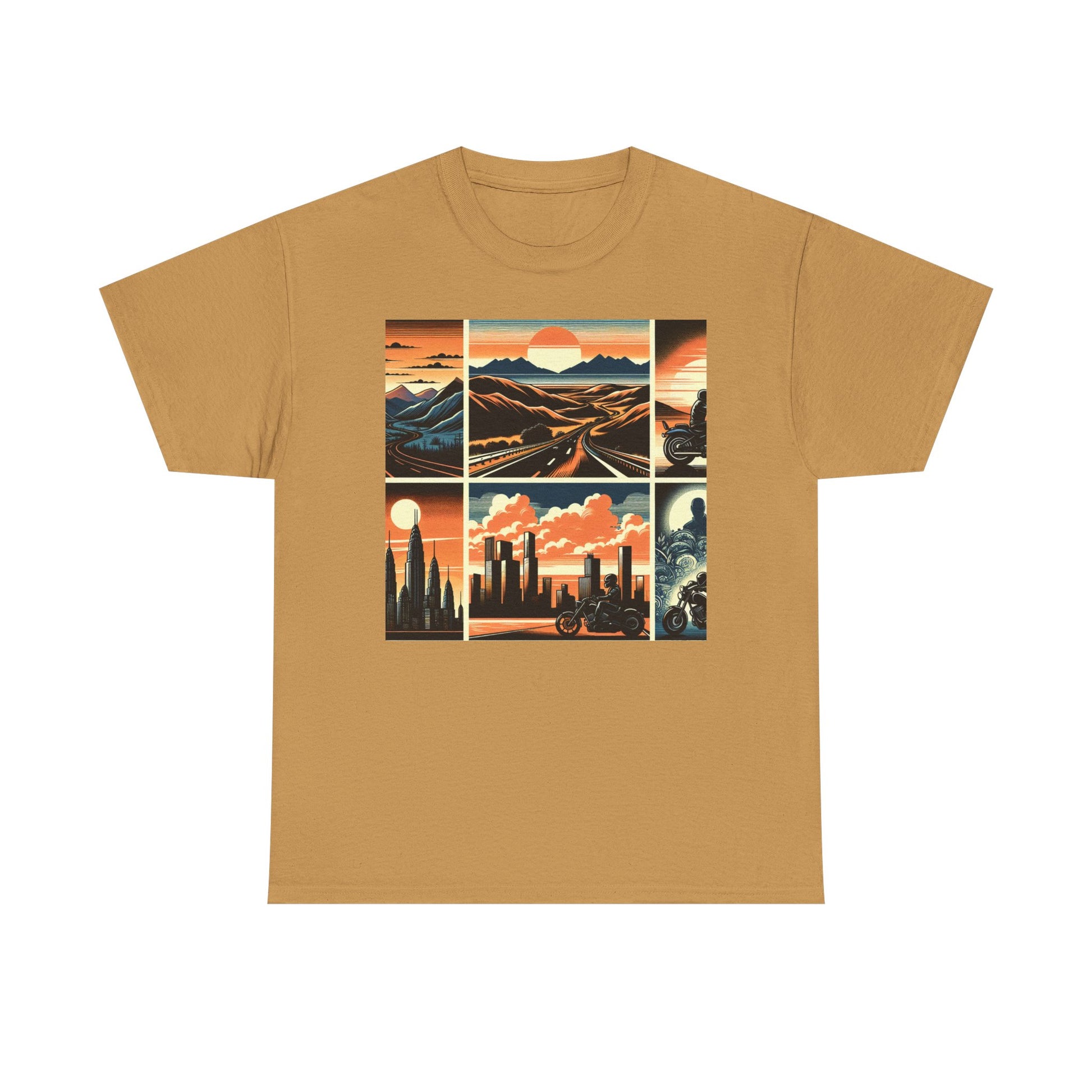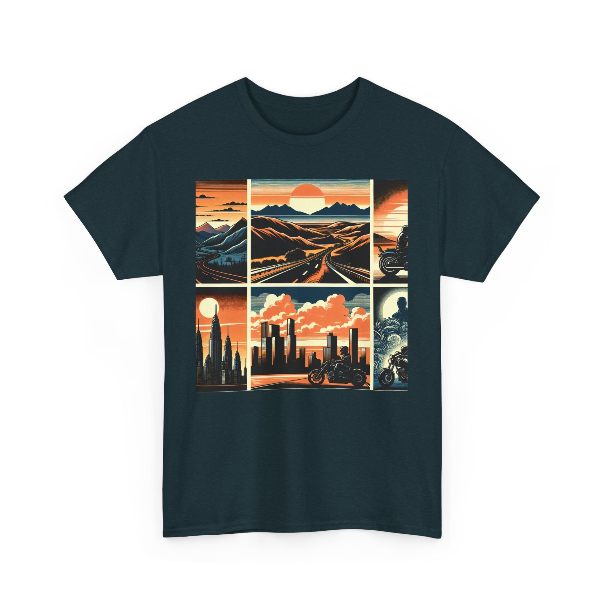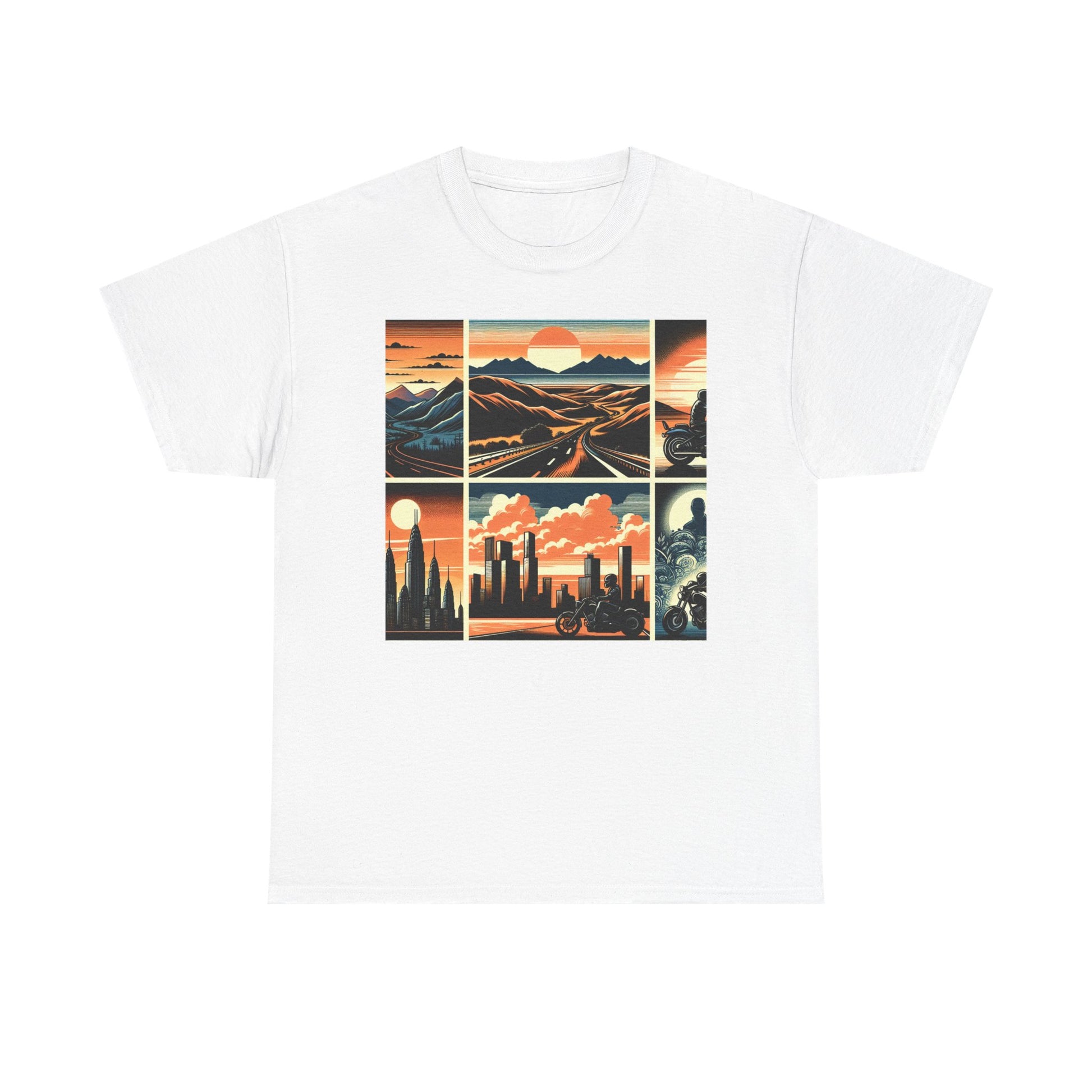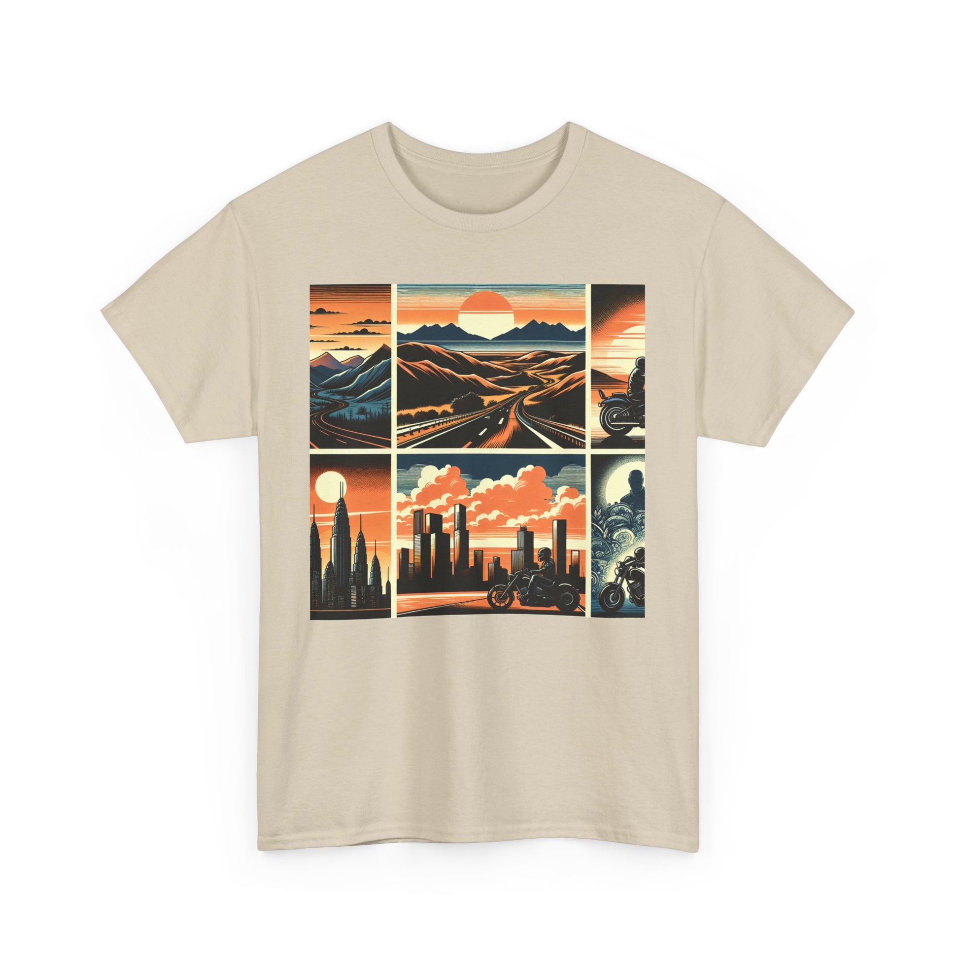 Retro Bike Adventure Vibes Unisex Heavy Cotton Tee - Vintage Motorcycle & Landscape Design